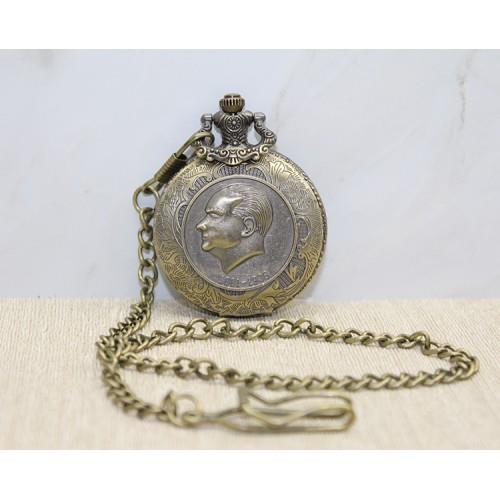 ATATÜRK TASARIMLI KÖSTEKLİ SAATÜrün ÖzellikleriAtatürk tasarımlı köstekli saat, nostaljik ve anlamlı tasarımıyla dikkat çeken özel bir aksesuardır. Bronz kaplama metal gövdesi, Atatürk silueti detaylarıyla zarif bir görünüm sunar. Açılır kapak mekanizması sayesinde saat kadranı kolayca görülebilir ve kullanımı pratiktir. Koleksiyoncular, tarihî ve anlamlı aksesuarları sevenler için mükemmel bir tercih olup, şık bir hediye alternatifi olarak da değerlendirilebilir.Paket İçeriği1 Adet Atatürk Tasarımlı Köstekli Saat