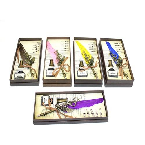 DİVİT HOKKA SETİ MODEL 3 Ürün ÖzellikleriDivit Hokka Seti Model 3, renkli tüy divit ve zarif işlemelerle süslenmiş bir yazı setidir. İnce işlemeleri ve renkli tüyü, yazı yazmayı keyifli bir deneyime dönüştürürken, hokka, mürekkebinizi şık ve düzenli bir şekilde saklamanızı sağlar. Dekoratif ve nostaljik tasarımı, geleneksel yazı sanatlarına ilgi duyanlar ve özel hediye arayanlar için harika bir seçenek sunar. Masa üstünde sergilenebilir, koleksiyon parçası olarak değerlendirilebilir.Not: Ürün farklı renklerde mevcuttur ve stok durumuna göre karışık gönderim yapılmaktadır.Paket İçeriği1 adet Divit Hokka Seti Model 3