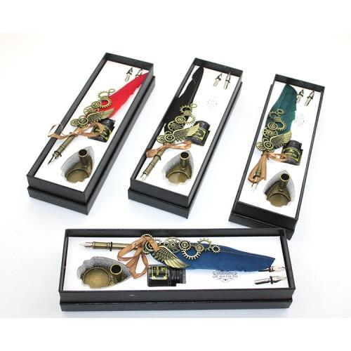 DIVIT HOKKA SETİ MODEL 4Ürün ÖzellikleriDivit Hokka Seti Model 4, koyu renkli ve zarif işleme detaylarıyla dikkat çeken nostaljik bir yazı setidir. Şık tasarımı, geleneksel yazı sanatlarına ilgi duyanlar için estetik bir deneyim sunar. Tüy divit, yazı yazmayı keyifli hale getirirken, hokka, mürekkebinizi düzenli bir şekilde saklamanızı sağlar. Zarif işleme detayları, bu seti hem dekoratif hem de koleksiyonluk bir parça haline getirir. Ev ve ofis dekorasyonunda kullanabileceğiniz bu set, aynı zamanda özel bir hediye seçeneği olarak öne çıkar.Not: Ürünler farklı renklerde mevcuttur ve stok durumuna göre karışık gönderim yapılmaktadır. Paket İçeriği1 adet Divit Hokka Seti Model 4