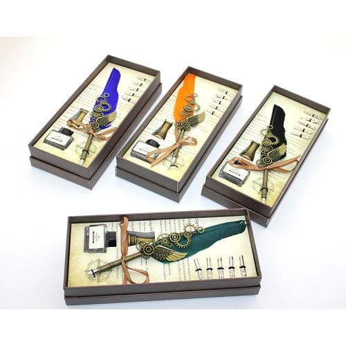 DIVIT HOKKA SETİ MODEL 5Ürün ÖzellikleriDivit Hokka Seti Model 5, renkli tasarımı ve zarif işleme detaylarıyla hem estetik hem de işlevsel bir yazı setidir. Tüy divit, dikkat çekici renkli tasarımı ve ince işçilikle süslenmiş detaylarıyla yazı yazmayı daha keyifli hale getirir. Hokka, mürekkebinizi düzenli ve şık bir şekilde saklamanıza olanak tanır. Klasik ve zarif tasarımı, bu seti dekoratif bir masa aksesuarı ve aynı zamanda özel bir hediye seçeneği haline getirir. Koleksiyon severler ve geleneksel yazı sanatlarına ilgi duyanlar için mükemmel bir seçimdir.Not: Ürün farklı renklerde mevcuttur ve stok durumuna göre karışık gönderim yapılmaktadır.Paket İçeriği1 adet Divit Hokka Seti Model 5