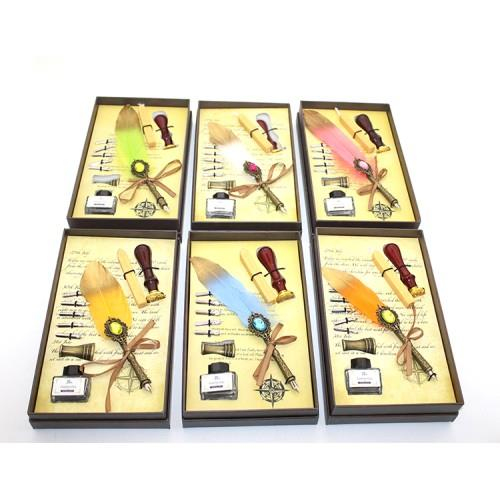 DIVIT HOKKA SETİ MODEL 8Ürün ÖzellikleriDivit Hokka Seti Model 8, renkli tüy ve taş detaylı tasarımıyla hem dekoratif hem de işlevsel bir yazı setidir. Tüy divit, göz alıcı renkli tasarımı ve zarif taş süslemeleriyle yazı yazmayı keyifli bir hale getirirken, hokka, mürekkebinizi şık ve düzenli bir şekilde saklamanızı sağlar. Klasik ve zarif tasarımı, seti hem koleksiyoncular hem de geleneksel yazı sanatlarına meraklı olanlar için ideal bir seçenek haline getirir. Masa üstünde şık bir aksesuar olarak da kullanılabilir.Not: Ürün farklı renklerde mevcuttur ve stok durumuna göre karışık gönderim yapılmaktadır.Paket İçeriği1 adet Divit Hokka Seti Model 8
