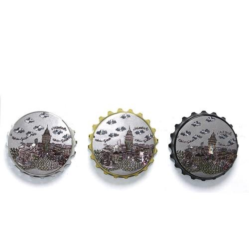 İSTANBUL TEMALI MAGNET MODEL 11 Ürün Özellikleriİstanbul Temalı Magnet Model 11, gazoz kapağı tasarımı ile nostaljik ve şık bir dekoratif üründür. Dayanıklı metal malzeme kullanılarak üretilmiş olup, uzun ömürlü kullanım sağlar. Gazoz kapağı şeklindeki tasarım, İstanbul’un kültürel simgelerini eğlenceli bir şekilde yansıtarak, şehri sevenler için farklı bir hediye seçeneği sunar. Mıknatıslı özellik sayesinde bu magnet, buzdolabı veya metal yüzeylere kolayca yapışır.Paket İçeriği1 adet İstanbul Temalı Magnet Model 11