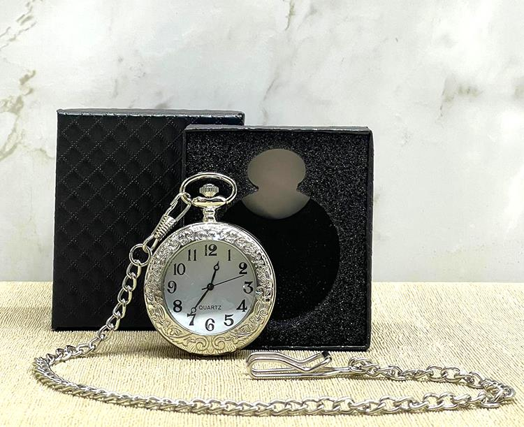 Özel Kutulu Gümüş Köstekli Saat  Zamansız bir zarafet sunan Gümüş Köstekli Saat , nostaljiyle şıklığı bir araya getiriyor. Özel kutusu sayesinde hem koleksiyonluk hem de hediye alternatifi olarak öne çıkan bu ürün, cepte taşımaya uygun kompakt yapısıyla dikkat çeker. Gümüş kaplaması ve klasik tasarımıyla vintage sevenler için ideal bir aksesuardır. Köstekli yapısı sayesinde klasik stilin vazgeçilmezlerinden biri olan bu saat, özel günlerde anlamlı bir armağan ya da masa üstünde nostaljik bir dekorasyon ögesi olarak da tercih edilebilir.Ürün Özellikleri: Boyut: 4 × 5 cm Tasarım: Klasik köstekli cep saati Malzeme: Gümüş renk kaplama Kutu: Özel hediye kutusunda Kullanım: Kişisel aksesuar, koleksiyon, hediyePaket İçeriği: 1 adet Özel Kutulu Gümüş Köstekli Saat
